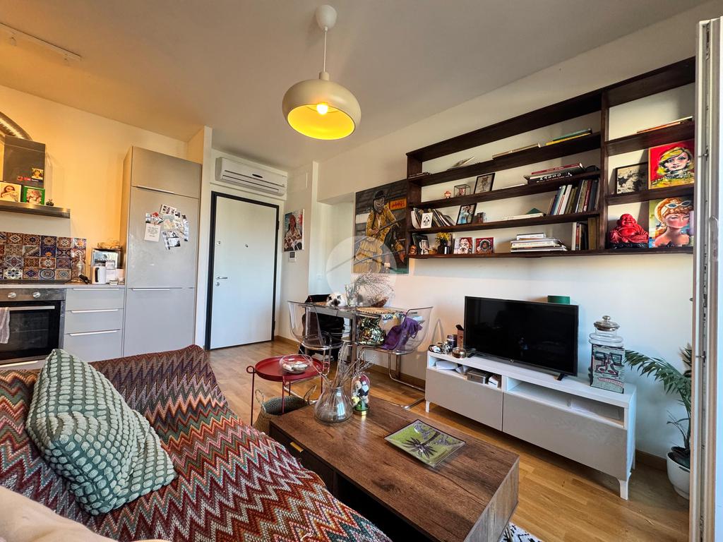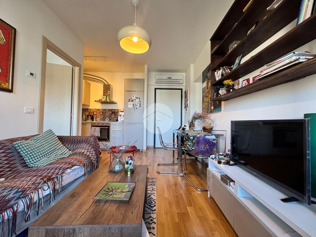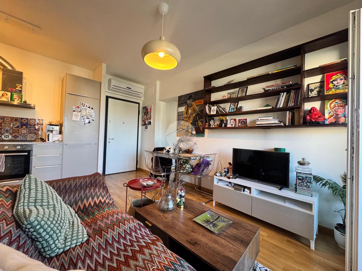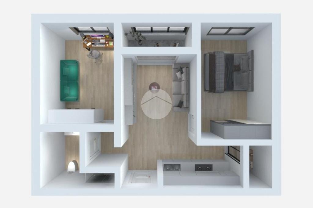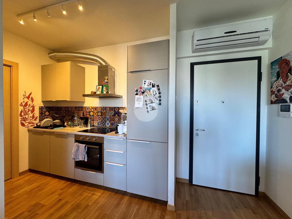 L'immobile finemente ristturato è composto dalla zona giorno in open-space con angolo cottura, ripostiglio e soggiorno con accesso al balcone.