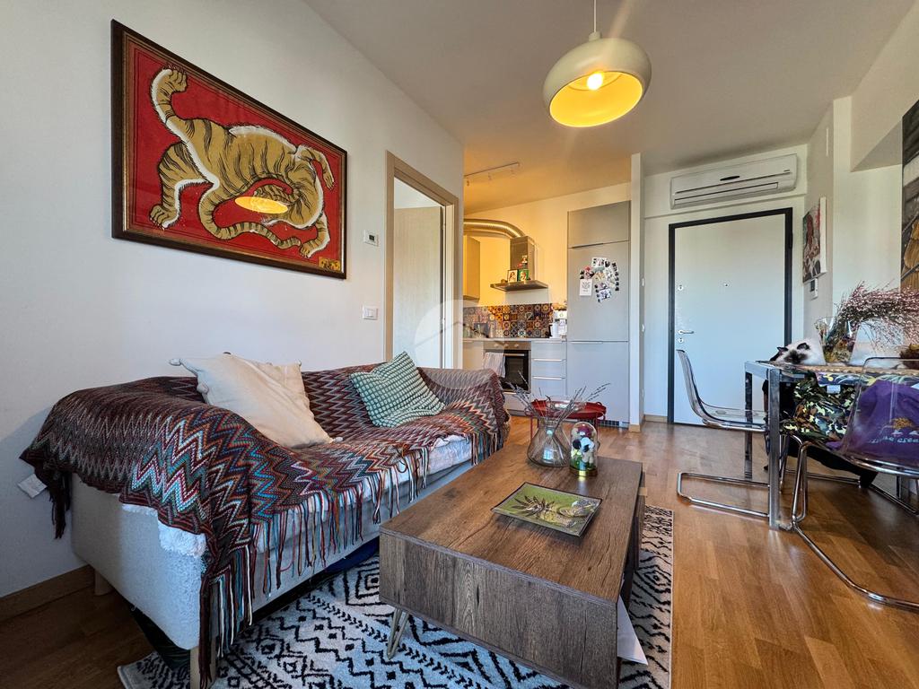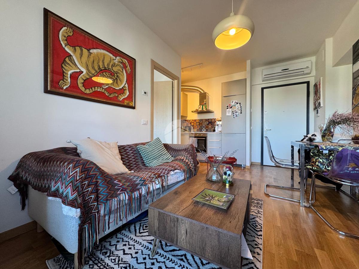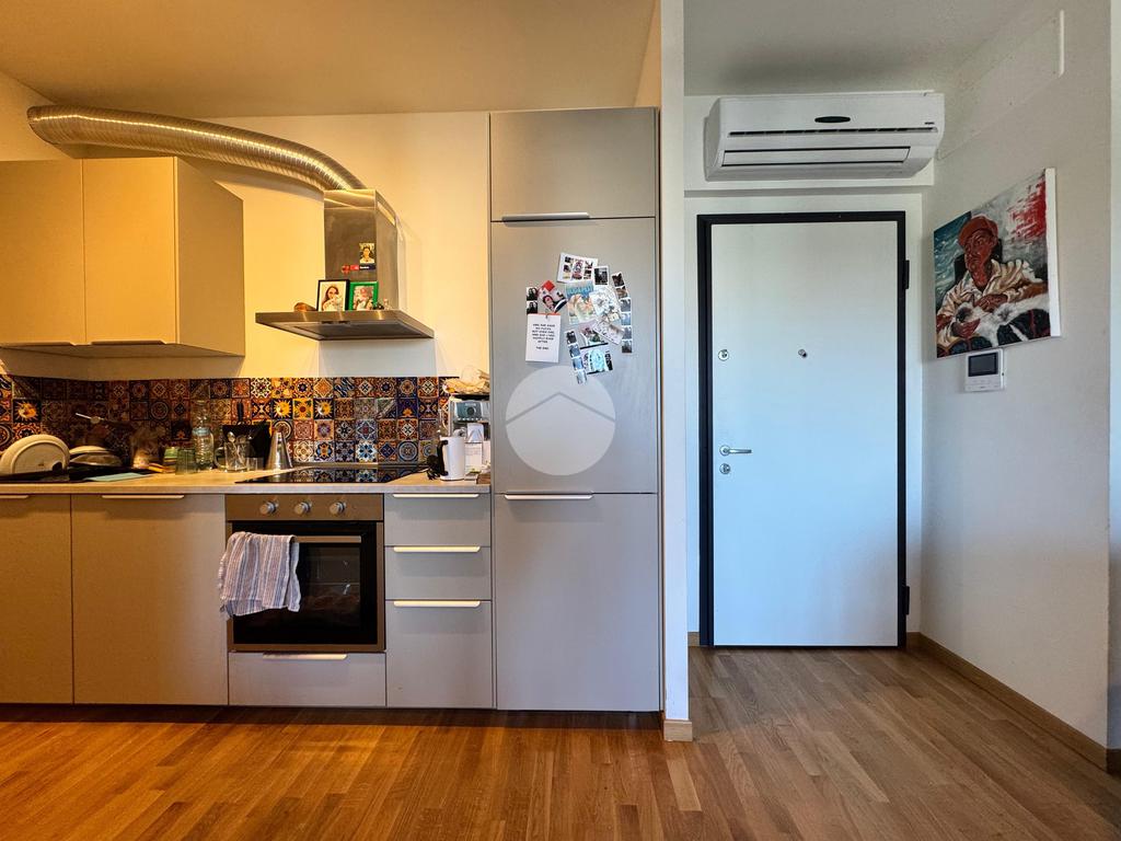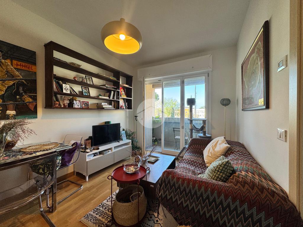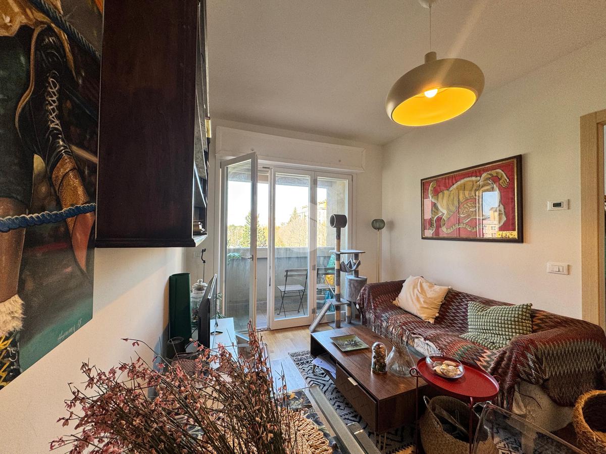 L'immobile finemente ristturato è composto dalla zona giorno in open-space con angolo cottura, ripostiglio e soggiorno con accesso al balcone.