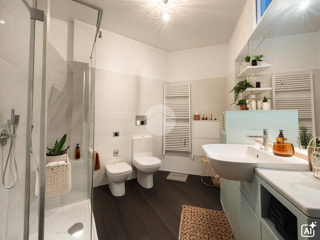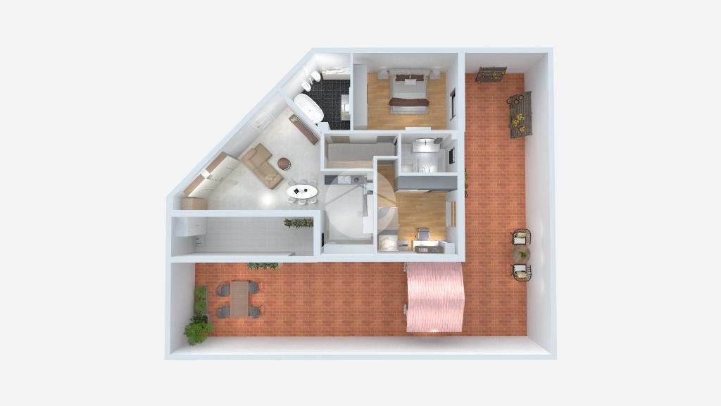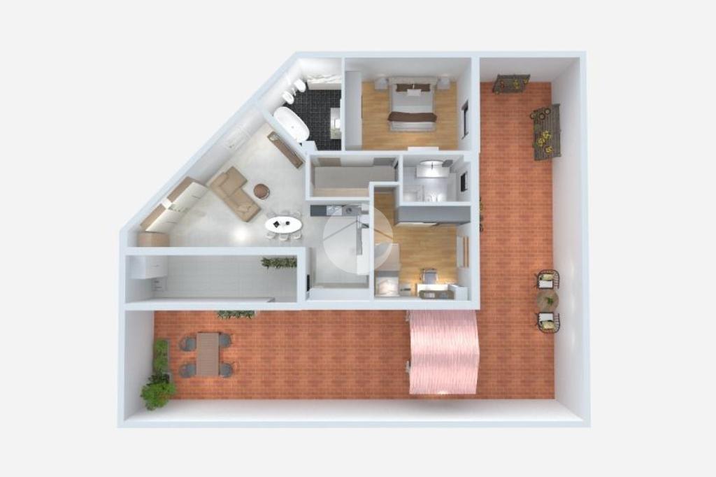 L'immobile è composto da due camere da letto, doppi servizi e zona giorno openspace con cucinotto.