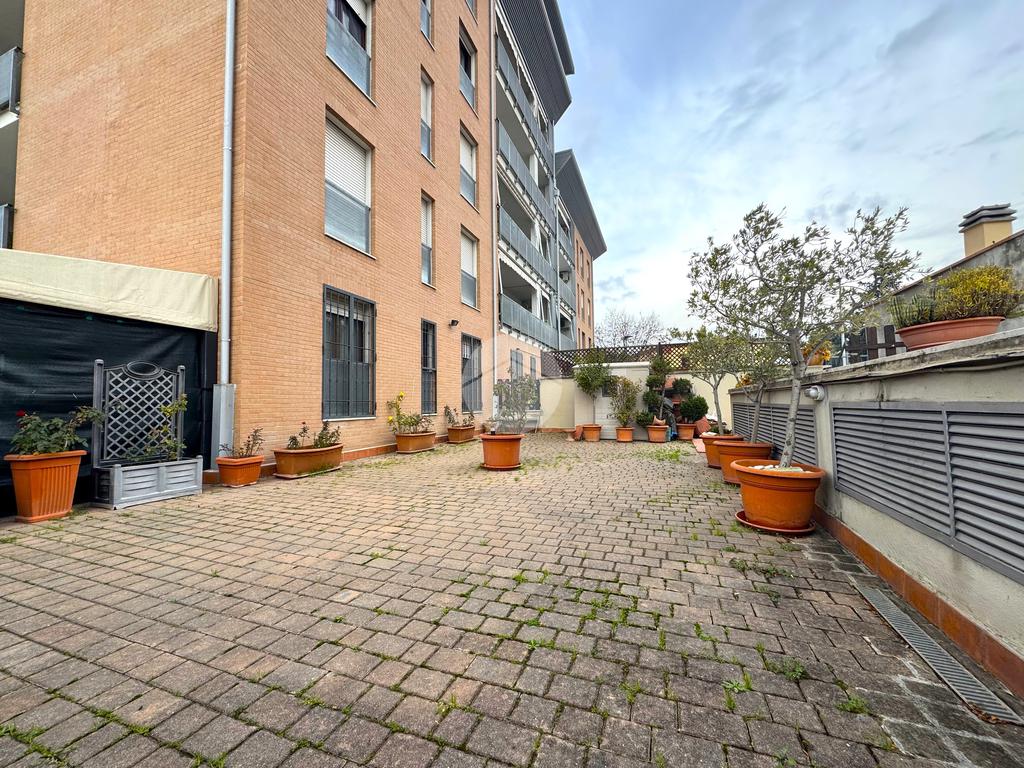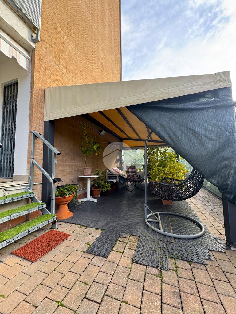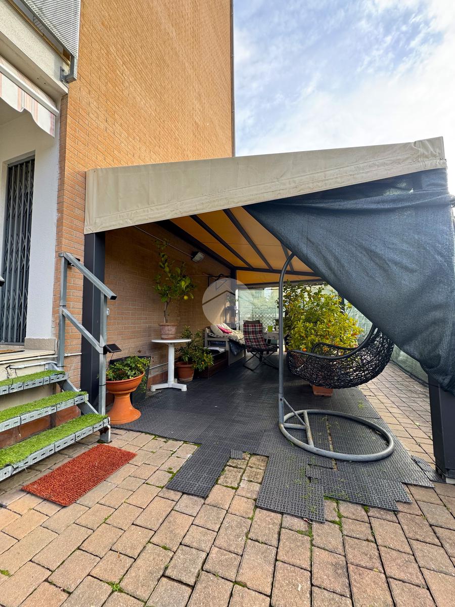 Dalla zona giorno si accede allo spazio esterno pavimentato di 250mq.