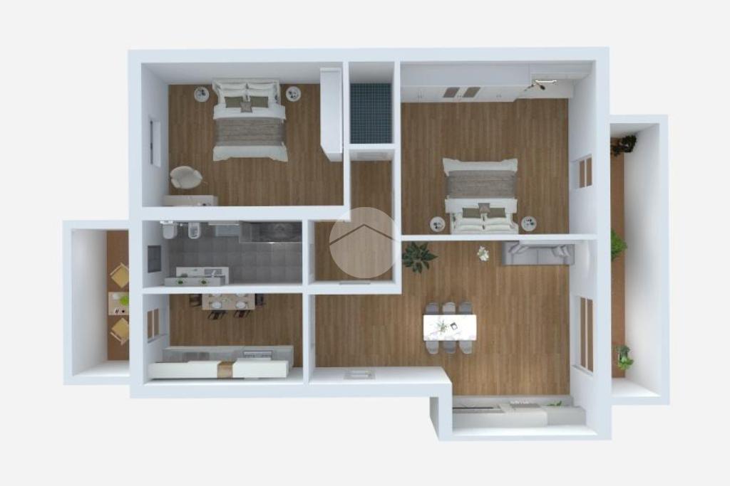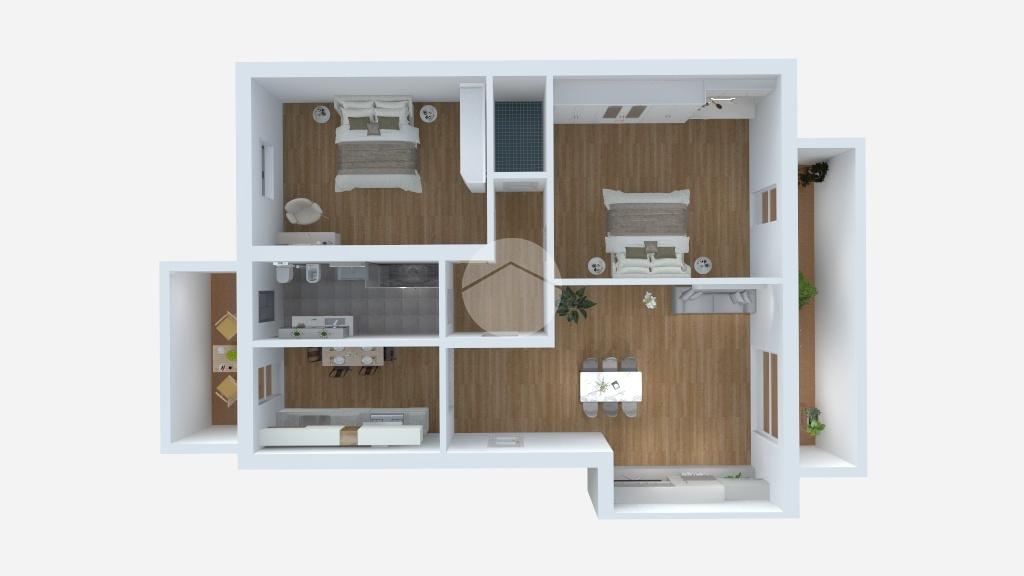 L'immobile è composto da un ampio e luminoso soggiorno, cucina abitabile, due camere matrimoniali, bagno finestrato con box doccia e un comodo ripostiglio.