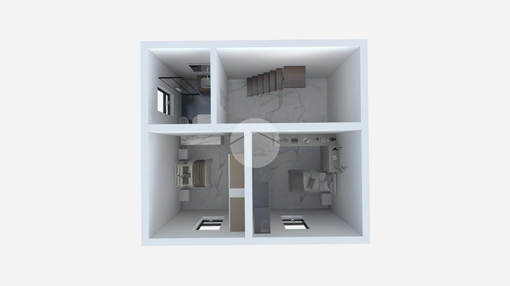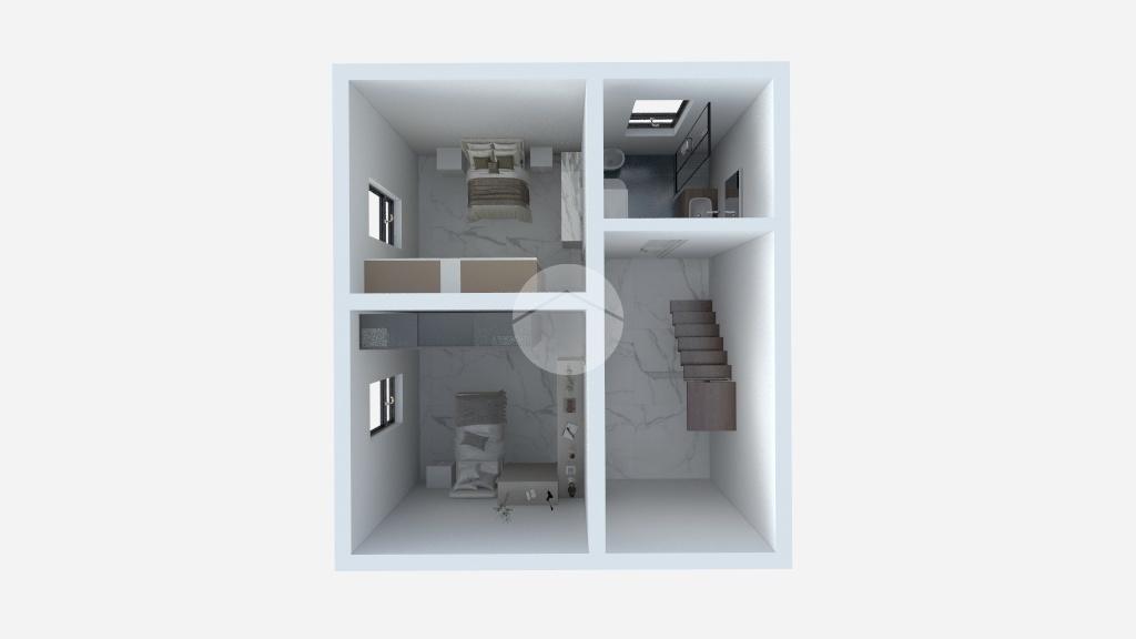Al piano superiore troviamo la zona notte, composta da 2 camere da letto e un bagno finestrato con box doccia.